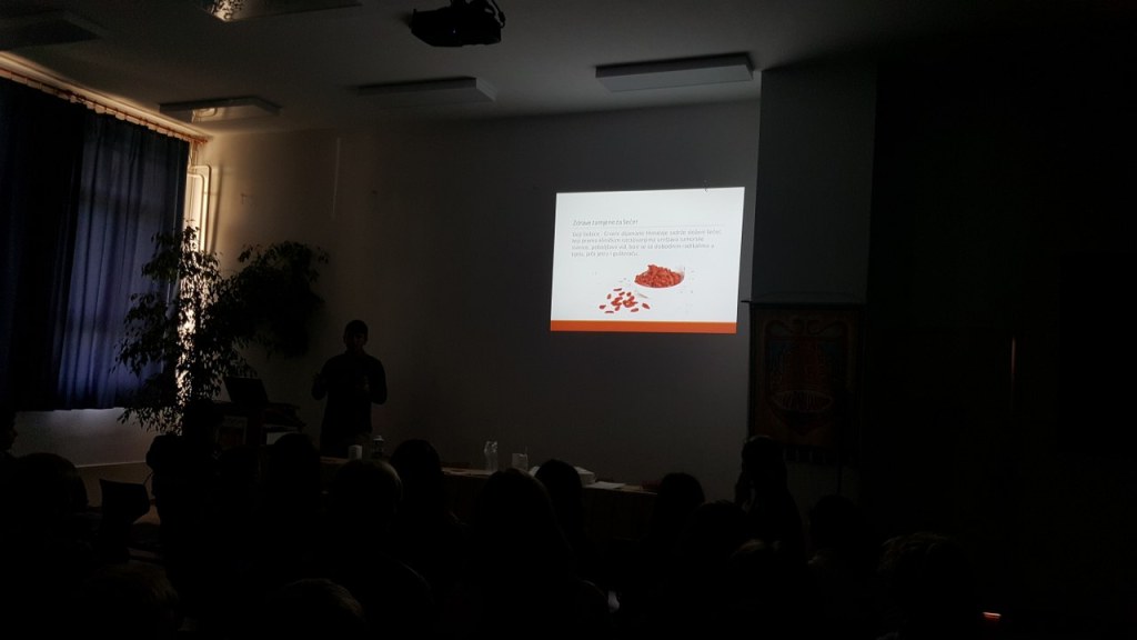 Mister Vlado Rimac, a health engineer from the Croatian Institute for Public Health, gave a lecture to the students in our project about hidden sugars in foods most teens (and adults) eat every day and alternative choices we can make.